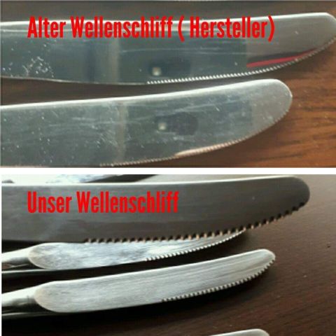 Wir freuen uns, Ihnen mitteilen zu dürfen, dass wir in unserer Messer und Scherenschleiferei Sala auch Tafelmesser mit einem neuen Wellenschliff versehen können. Dieser spezielle Schliff sorgt nicht nur für eine gesteigerte Schärfe, sondern auch für eine längere Haltbarkeit Ihrer Messer.