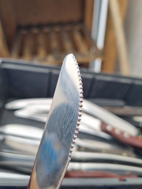 Sind Ihre Tafelmesser stumpf und schneiden nicht mehr wie gewohnt? Dann sind Sie bei uns genau richtig! In unserer Messer und Scherenschleiferei Sala verpassen wir Ihren Messern einen neuen Wellenschliff, damit sie wieder richtig schneiden können.